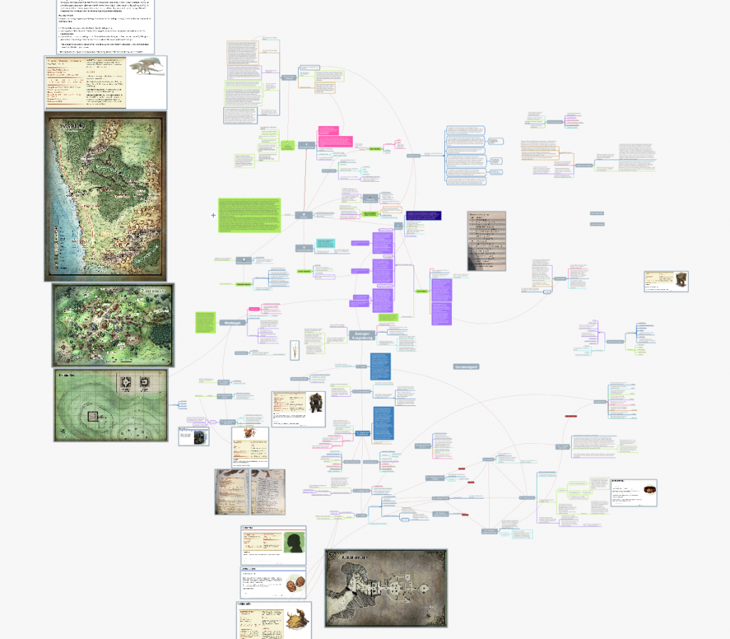 I hope I have taken away some of the fear if you’re trying to have your first session. I know, the material is incredibly intimidating. The rules, the world, the characters. I spent weeks to prepare for my first session. But eventually I figured out what to do and what to expect. And I HORRIBLY OVERPREPARED. Here’s a screenshot of my mindmap that I built in Mindnote just for the beginning of Dragon of Icespire Peak. I’ve made multiple fallbacks and potentials and what if scenarios that I derailed myself once my players started to do something which I had not foreseen. And that was the first thing that I learnt from this first session: You can’t plan everything in advance. You can’t estimate what stupid ideas your players might have and might follow. So take a step back and have your adventure as simple as possible and only with time you can add more and more detail. Because for example, that one person that went missing who should deliver some books. Maybe those books contain some secrets for the next session.