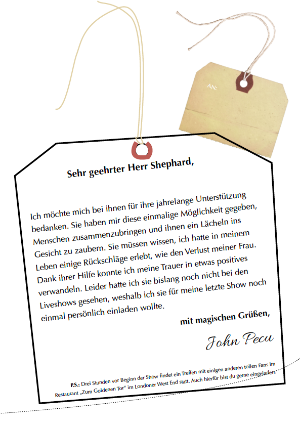In general, I’ve written and designed this campaign around this main antagonist named John Pecu who had experienced a significant loss in his life after a failed experiment that pulled his wife into a parallel dimension. He would then dedicate his life to finding her. Eventually he would become a world class magician, hiding his findings in multiversal portal technology as a magic show, before his eventual final stage show that he would use to open up a portal and sacrifice this universe in order to find his wife again, who is lost in the multiverse. And the players should stop him. In this scenario your players try to find out the main background and the main antagonist’s motivation over a course of your campaign. Unfortunately we only produced one episode of this campaign (which can still be found on YouTube, which I will link below). But there are other methods to tell a story within a story: